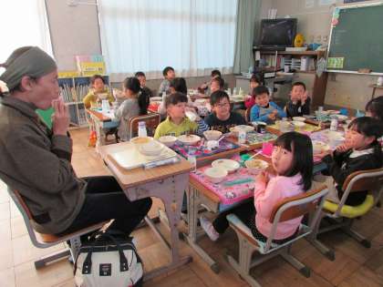 今日から給食が始まりました。今日の献立は子どもたちが大好きなカレーライスでした。