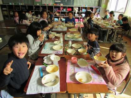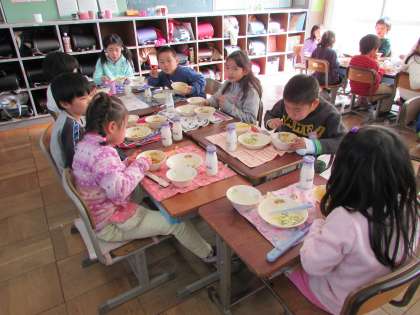 11/11 2年 給食風景1 公開日 2018/01/11 更新日 2018/01/11 2年生の部屋 昨日の2年1組の給食の様子です。子どもたちの大好きなカレーライスだったので、みんなうれしそうでした。 いいね(0)