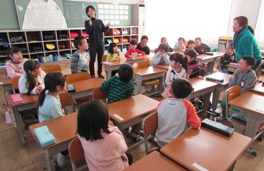 1/18 1年 外国語活動1 公開日 2018/01/18 更新日 2018/01/18 1年生の部屋 1年1組の外国語活動の授業の様子です。ALT(外国語指導助手)のマリビック先生と担任の武田先生によるチーム・ティーチングです。英語で名前を聞かれて、自己紹介をしました。 いいね(0)
