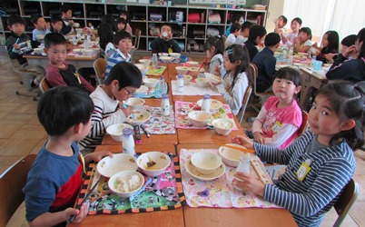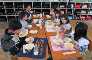 3年1組の給食の様子です。低学年から中学年になり、落ち着きやゆとりが感じられました。