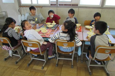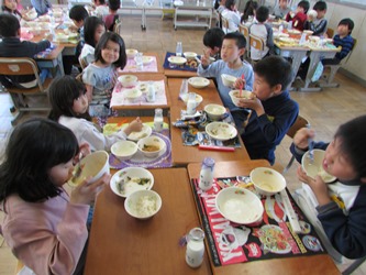 3年1組の給食の様子です。今年もたくさん食べて、大きくなろう!