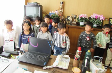 1年1組の子どもたちが生活科の授業で校長室の見学に来てくれました。
