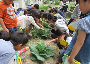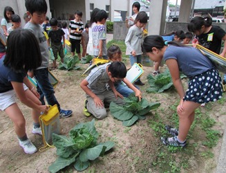 3年生の子どもたちが、理科の授業でモンシロチョウの幼虫の観察を行いました。