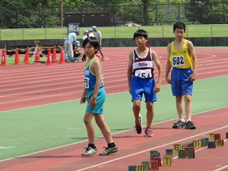 走り幅跳びの競技の様子です。 心を落ち着かせて、気持ちを集中します。