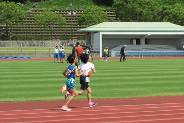 6/9 常滑市小学校陸上競技大会6 公開日 2018/06/09 更新日 2018/06/09 大野小の部屋 6月7日(木)に行われた第58回常滑市小学校陸上競技大会の女子800m走の様子です。 本校の竹内瑠心さんがスタンド前の最後の直線で先行の2人を抜き去り、見事に優勝しました。 小崎 渚さんも7位で、あと一歩で入賞でした。 二人ともよくがんばりました。 いいね(0)