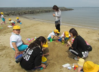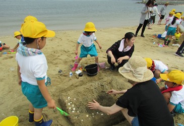 たくさんの保護者ボランティアの方が引率だけではなく、海に入って水をくんだり、海草や貝殻を集めたりしてくれました。