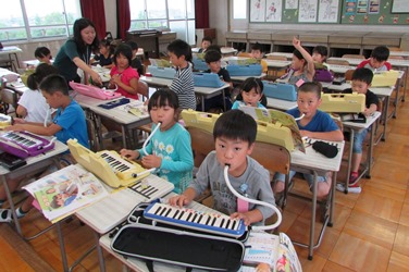 鍵盤ハーモニカの練習に一生懸命取り組んでいました。
