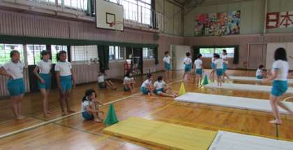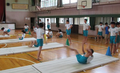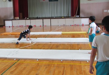 マット運動で神野先生が見本を見せていましたが、とても上手でした。