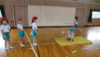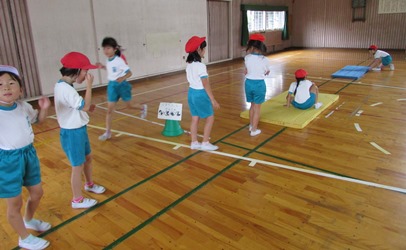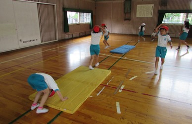 2年1組の子どもたちがいろいろな種類の「体つくり運動」に取り組んでいました。