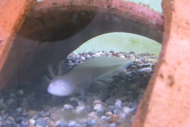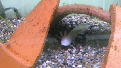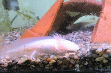 6/17 ウーパー・ルーパー 公開日 2018/06/17 更新日 2018/06/17 大野小の部屋 5月の連休明けに、地域の方からいただいた2匹のウーパー・ルーパー(メキシコサラマンダー)が大きくなりました。エラのヒラヒラも立派になり、一人前になってきました。 エサをたくさん食べ、元気に水槽の中を泳ぎ回ったり、歩き回ったりしています。 かわいくて、見ていて飽きません。 いいね(0)