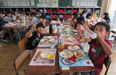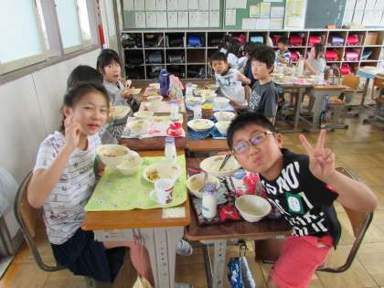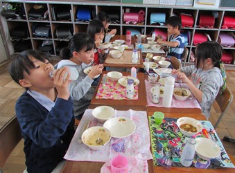 4年1組の給食の様子です。 いつも元気のいい給食タイムです。