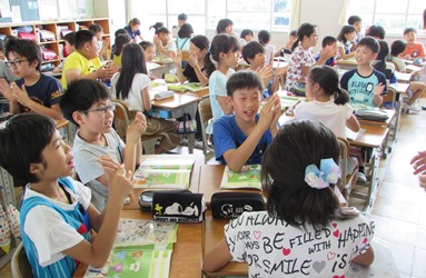 6/17 5年 外国語活動2 公開日 2018/06/17 更新日 2018/06/17 5年生の部屋 5年1組の外国語活動の授業風景です。 「What color do you like ?」 「I like purple .」 「何色が好きですか」という質問を出し合って盛り上がりました。 いいね(0)