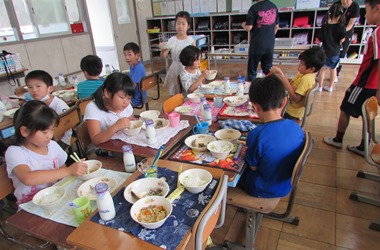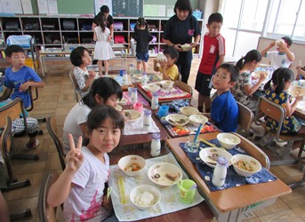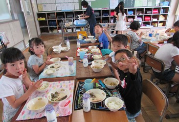 2年2組の給食の様子です。 楽しく、おいしく給食を食べることができました。
