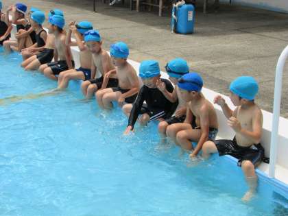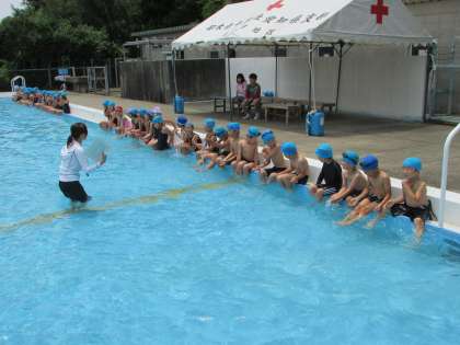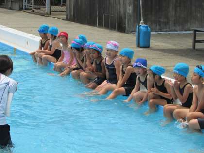1年2組の水泳の授業の様子です。 小学校で初めての水泳指導が今日から始まりました。