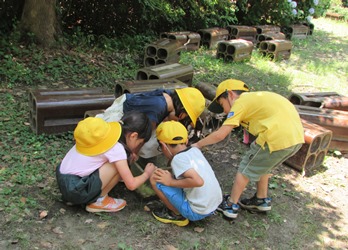 2年2組の子どもたちが、生活科の授業でカタツムリやダンゴムシなどを探していました。