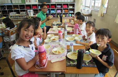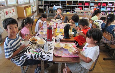 2年1組の昨日の給食の様子です。 みんなで楽しく食べることができました。