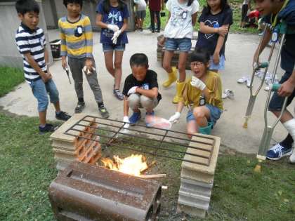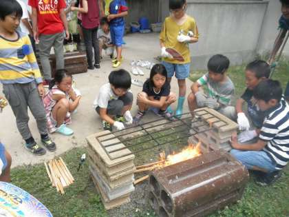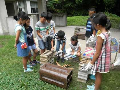 7/5 5年 飯盒炊飯の練習 公開日 2018/07/05 更新日 2018/07/05 5年生の部屋 昨日、雨の間隙をぬって、5年生が飯盒炊飯の練習とカレーづくりを行いました。 雨天だったので、1階渡り廊下の近くに1カ所だけ炉を作り、木を組んで、火をつける練習をしました。日程的に新たな練習日がとれないため、少し心配ですが、本番で、しっかり飯盒炊飯ができるように、学生ボランティアの人たちといっしょにがんばりたいと思います。 いいね(0)
