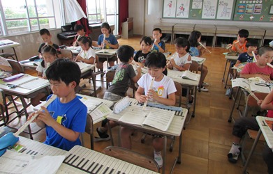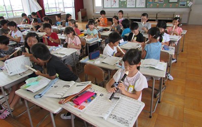 3年1組の音楽の授業の様子です。 リコーダーの個人練習をしていました。