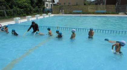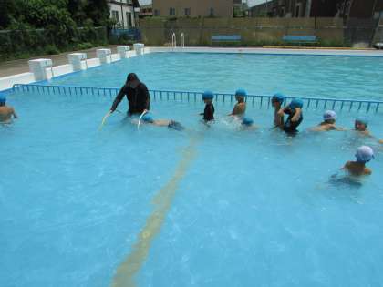 7/14 1年 水泳6 公開日 2018/07/14 更新日 2018/07/14 1年生の部屋 1年1組の子どもたちが、沈めた2つのリングを伏し浮きやバタ足をしながらくぐる練習をしていました。 いいね(0)