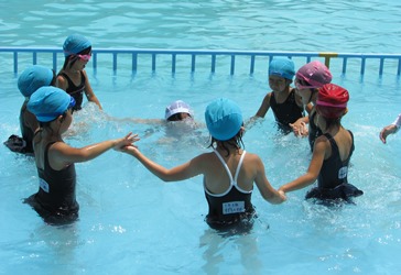 7/14 1年 水泳7 公開日 2018/07/14 更新日 2018/07/14 1年生の部屋 1年2組の水泳指導の様子です。 一人でもぐった状態から、水上にジャンプしたり、みんなで手をつないで丸くなった状態からもぐって、一斉にジャンプしたりしていました。とても楽しそうでした。 いいね(0)