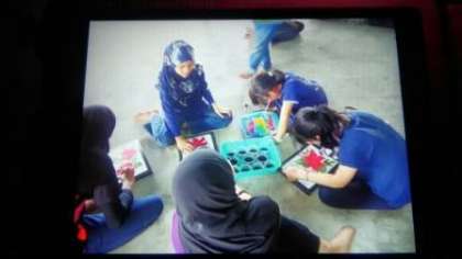 これは、パディックを作っているところです。みんなの作品を並べました。