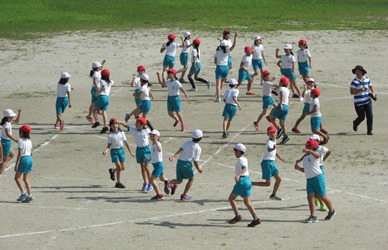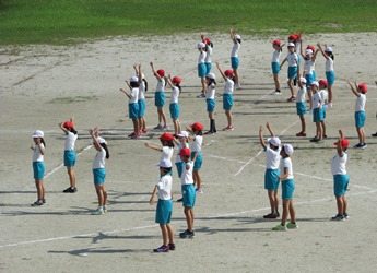 4年生の子どもたちが、運動会種目の「虹」の練習を3年生といっしょにしていました。