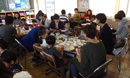 1年2組の親子給食の様子です。 親子で「いただきます」をしました。