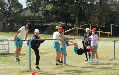 5年1組の体育(鉄棒)の授業の様子です。 自分のできそうな技に挑戦していました。