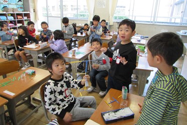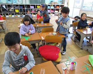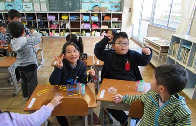 1年1組の子どもたちが数え棒を使って、いろいろな形を作っていました。