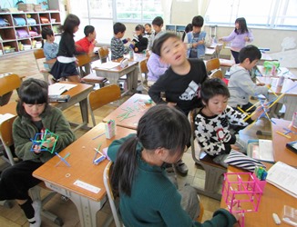 11/23 1年 算数2 公開日 2018/11/23 更新日 2018/11/23 1年生の部屋 1年1組の子どもたちが数え棒を使って、平面図形だけではなく、立体の図形も作っていました。 いいね(0)