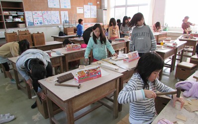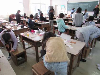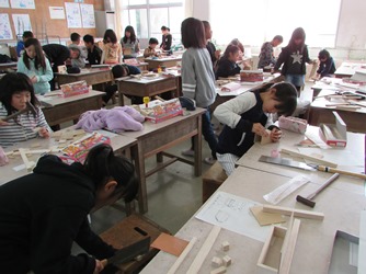 11/23 4年 図工2 公開日 2018/11/23 更新日 2018/11/23 4年生の部屋 4年1組の子どもたちが、のこぎりで板を切ったり、板にくぎを打ったりして、生活で使える木工作品を作っていました。 いいね(0)