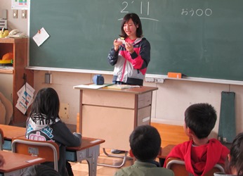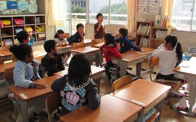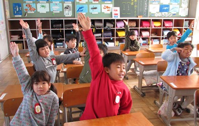 1年2組の国語の授業の様子です。 言葉の学習をクイズ形式で行っているところです。