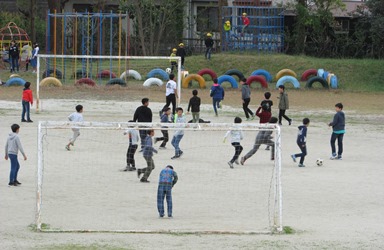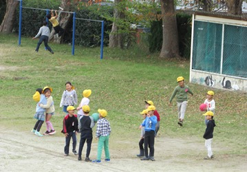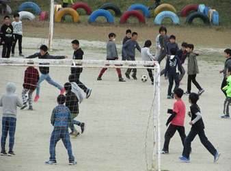 大放課、子どもたちは寒さに負けず、元気いっぱいに運動場で遊んでいます。