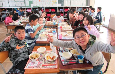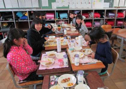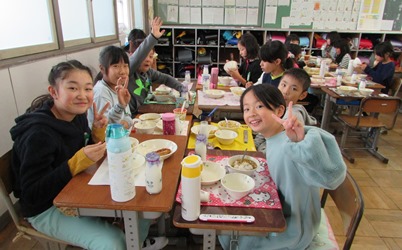 4年1組の昨日の給食の様子です。 いつも元気いっぱいの給食風景です。
