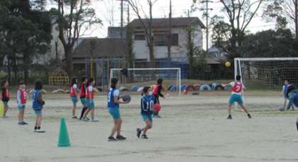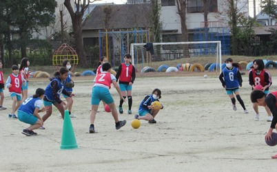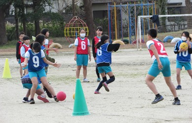 ドッジボールをたくさん使って、楽しそうに「てんか」をしていました。