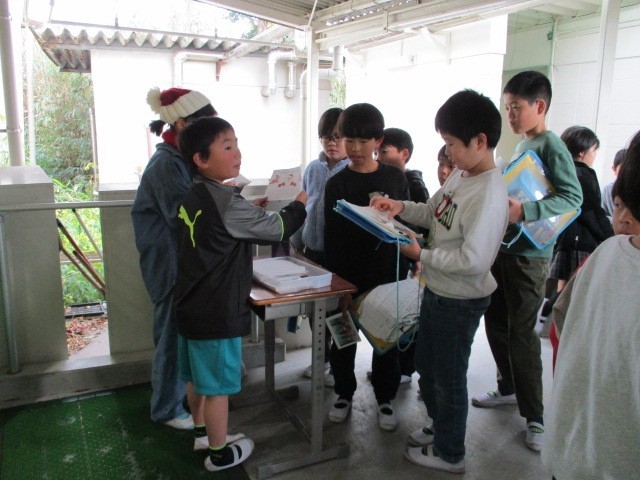 最後に児童会役員のところに持って行くと、かわいいクリスマスカードがもらえました。