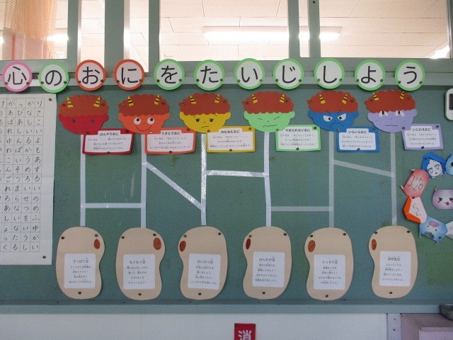 保健室の前にもいろんな鬼のやっつけ方が掲示してあります。あなたの退治したい鬼はどんな鬼ですか?