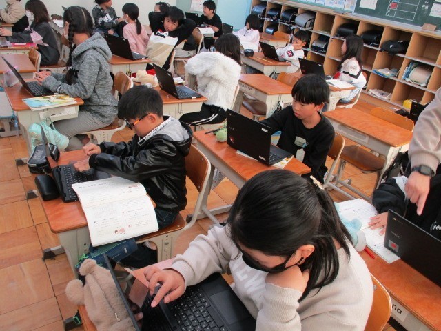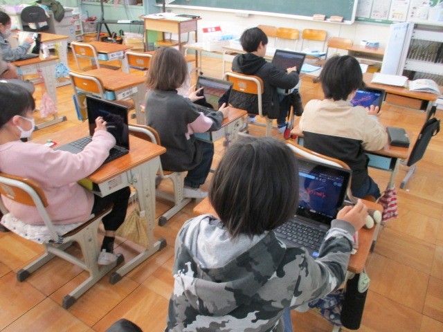 今日の学活はお楽しみ会の準備をしました。発表のグループは5つです。他のグループに内容が見られないように注意しながらの準備でした。