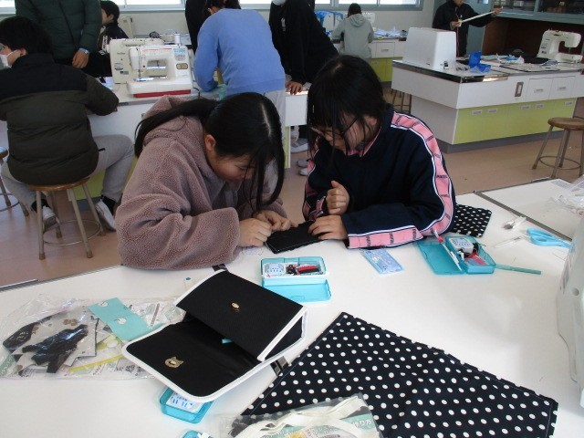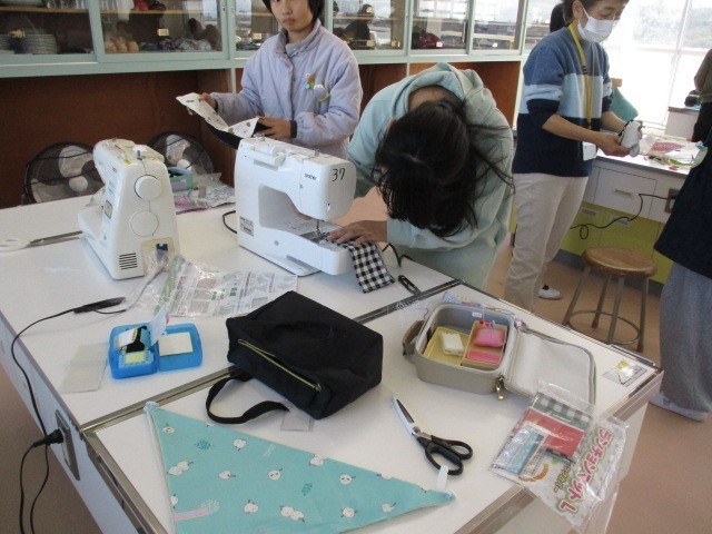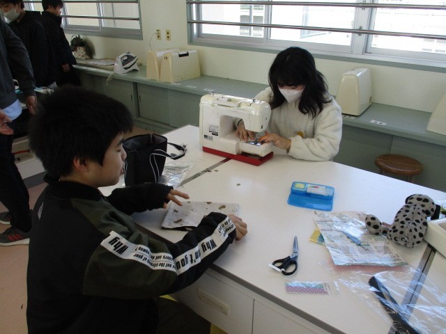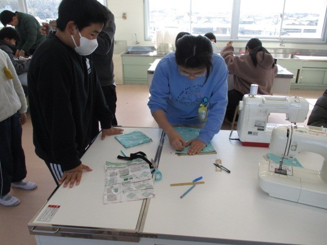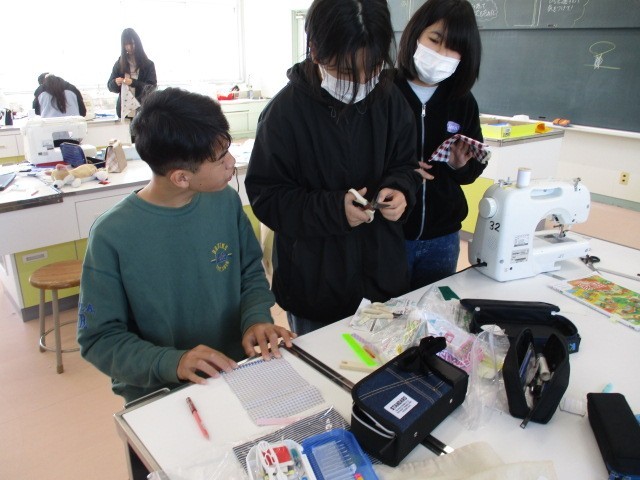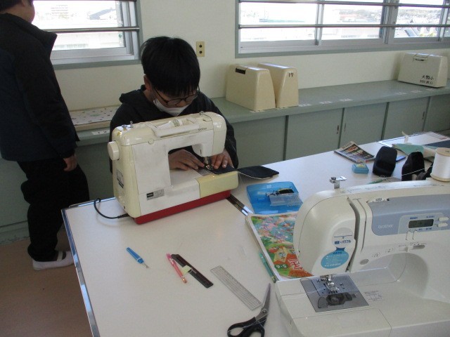 家庭科室をのぞくと、友達同士で教え合いながら何かをせっせと作っていました。