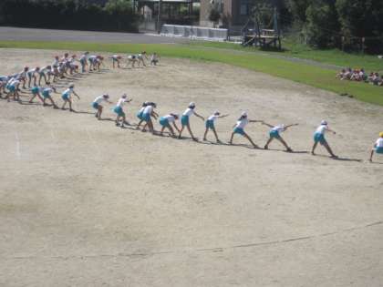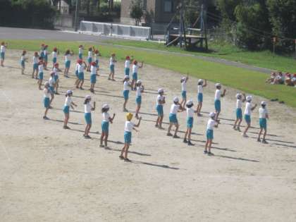 6年生が、ソーラン節を運動場で5年生に見せる形で踊りました。最後の5年生との合同演技では、教室で聞くより大きな声で迫力がありました。本番までしっかり練習をして盛り上げていきましょう。