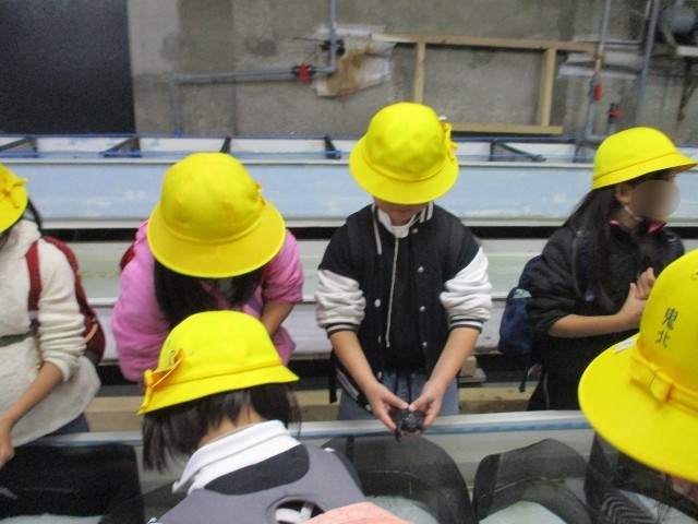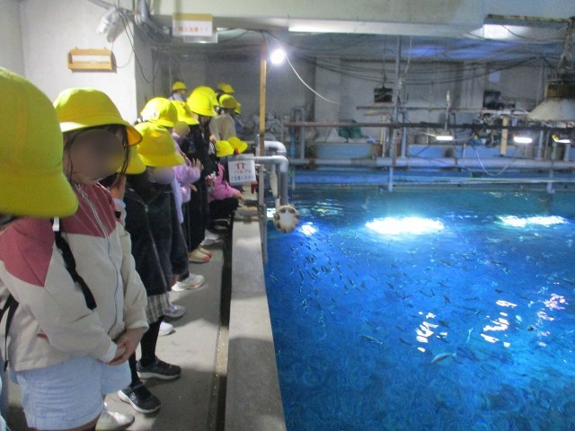 水族館の裏側を見せてもらいました。餌を準備する部屋には、大きな冷凍庫があって、中にも入らせてもらいました。深さが5メートルもある大水槽を上から見たり、かめの赤ちゃんを触らせてもらったりするなど、いろいろな体験ができました。