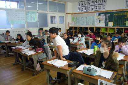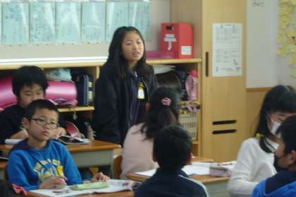 10分の3のような数の別の表し方についてみんなで意見を出し合い、小数と分数の関係を確かめました。