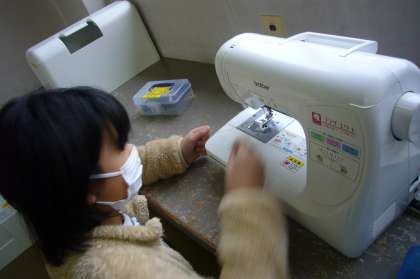 ミシンの扱いを練習しています。