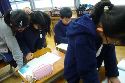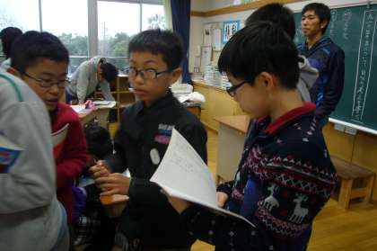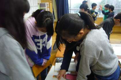 そのまとめたものを見合ったり伝え合ったりしました。