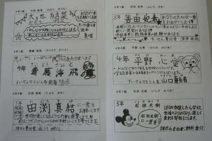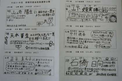 6限目、4年生以上の児童が体育館に集まり、児童会役員選挙の演説会が行われました。