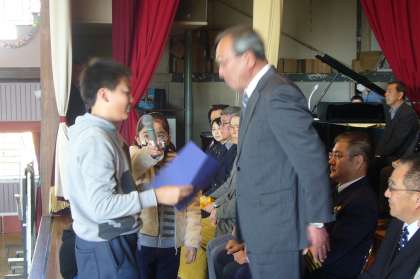 感謝の会では、子どもたちから花束と感謝の手紙を送り、歌や演奏のプレゼントをしました。