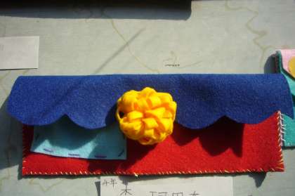 クラブ活動の時間に裁縫クラブの部員が作った作品(小物入れ)が展示されています。