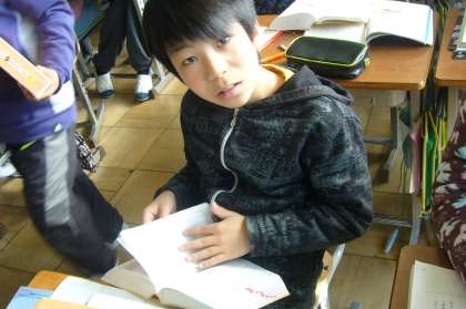 「わらぐつの中の神様」の読み取りをしています。