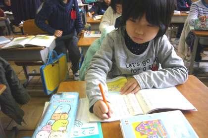 しっかり読んだあとに、動物の動きが書かれているところを指定された色で線引きしました。