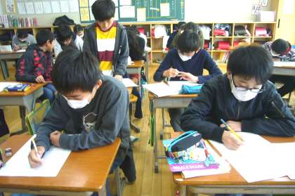 学級に関係なく、学年を三つに分けての学年算数に取り組んでいます。